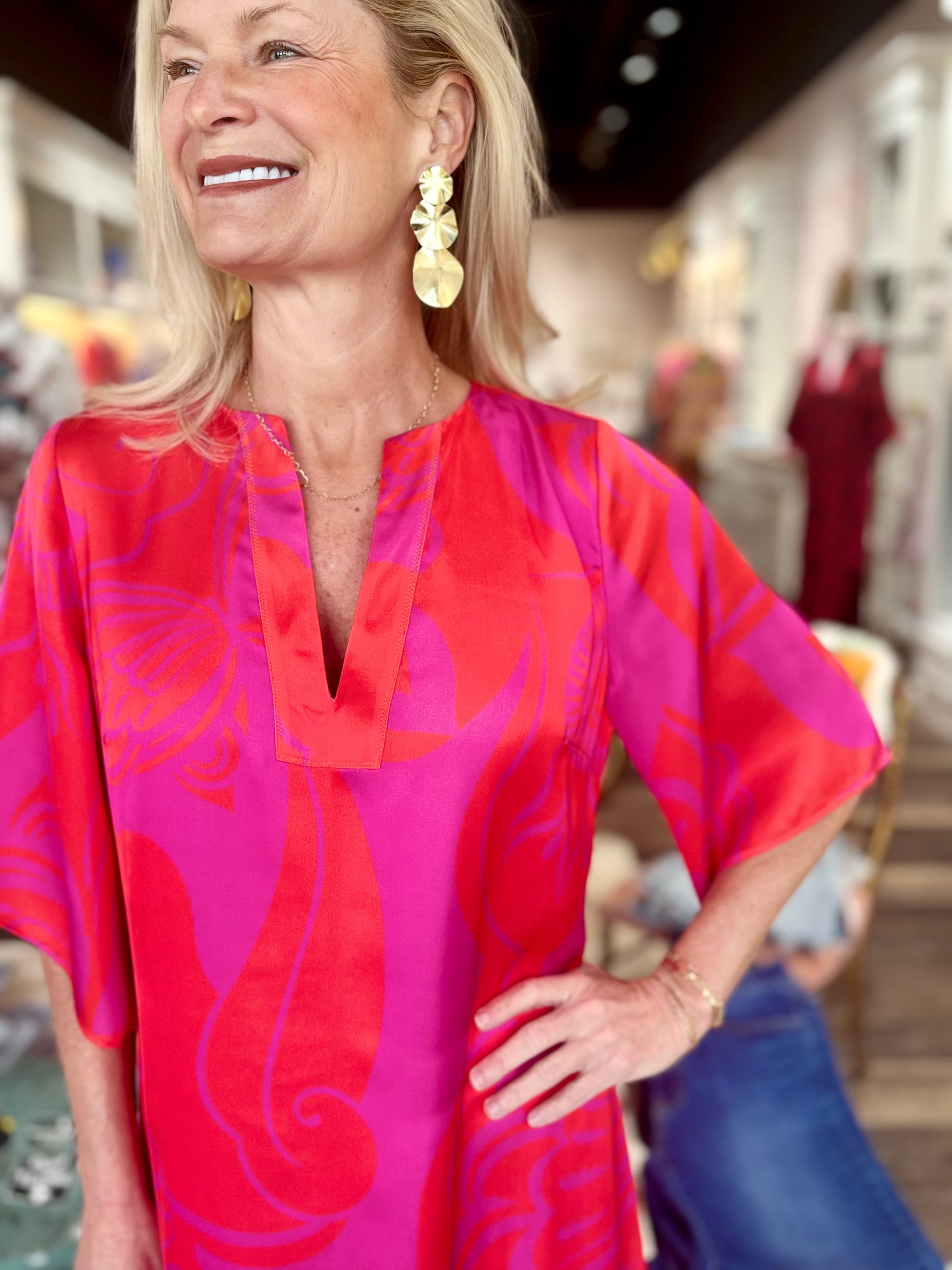 Embrace effortless elegance with The Delaney Dress in Bloom! The loose, flowy silhouette drapes beautifully, offering a relaxed fit that moves with you, perfect for those warm days when comfort meets style.