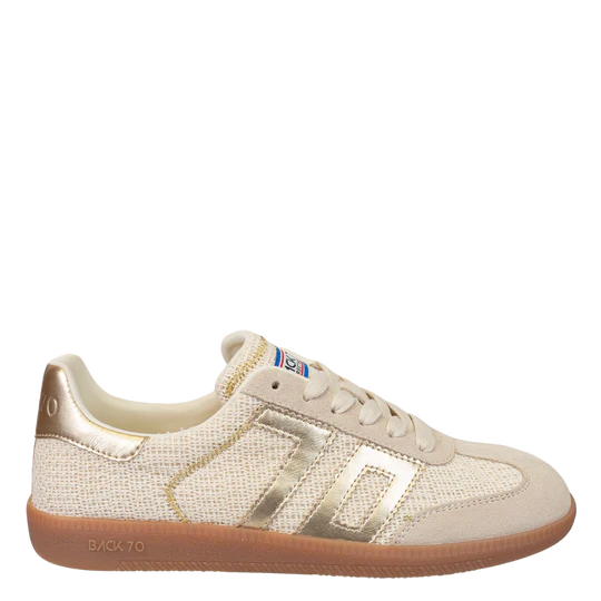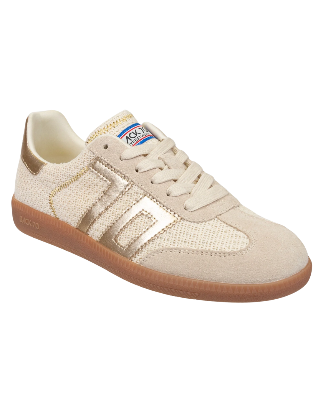 Add a feminine touch to your wardrobe with these soccer-inspired sneakers. Iuta's woven upper lends the style to homespun, resort wear vibe that gives you all the feel-good energy. These statement kicks are scoring big time on the fashion scene with the perfect blend of planned and off-duty vibes. Refresh your kicks with this artisanal boutique style blending a fusion of retro chill and modern edge.