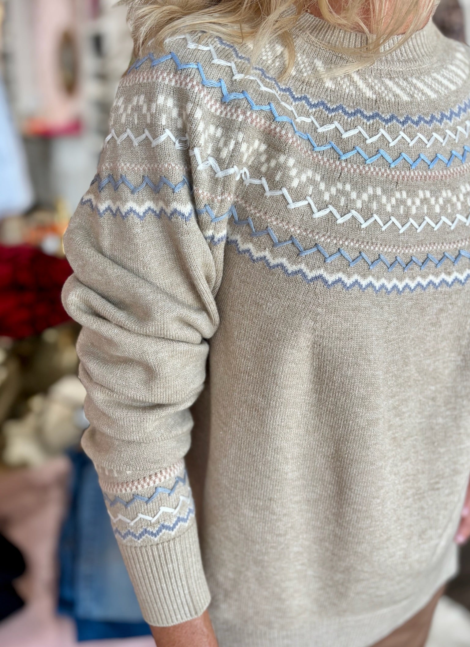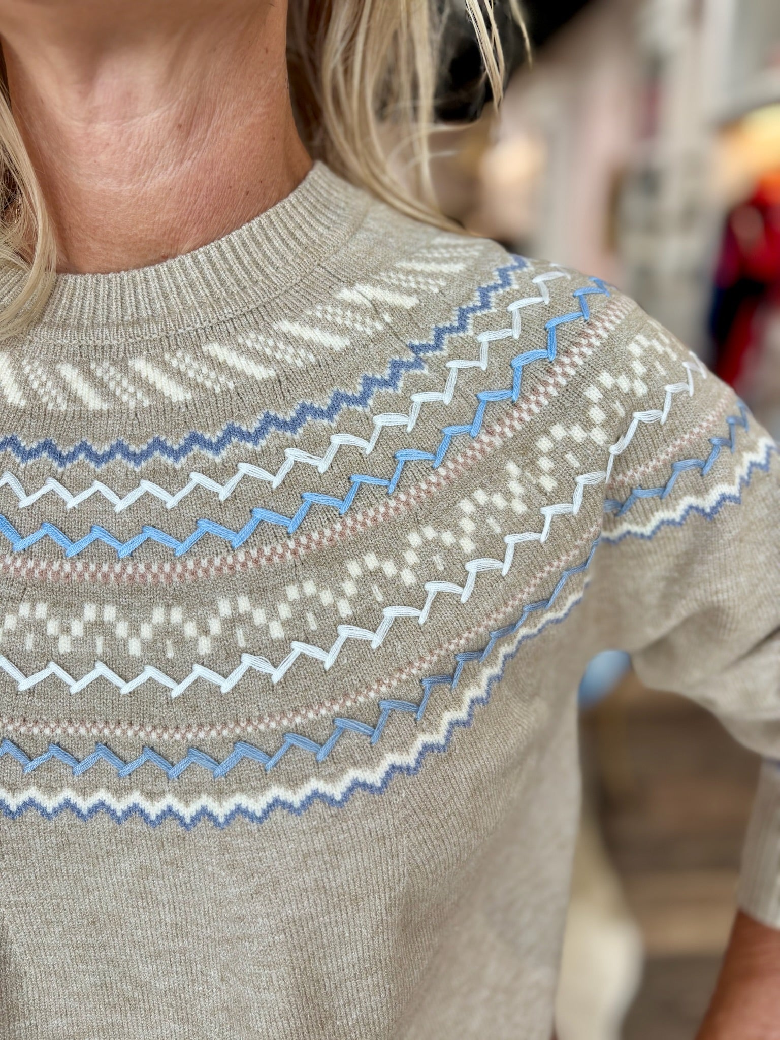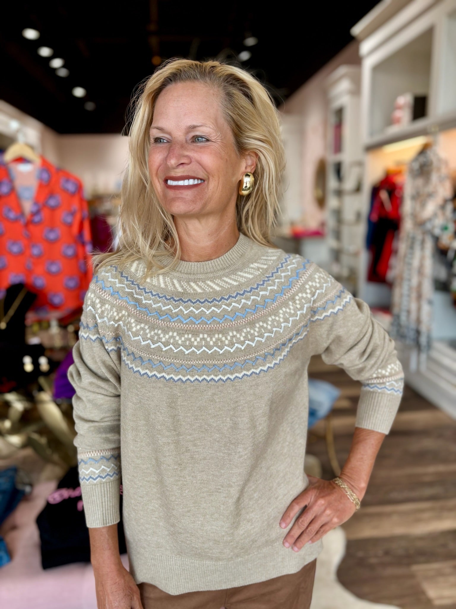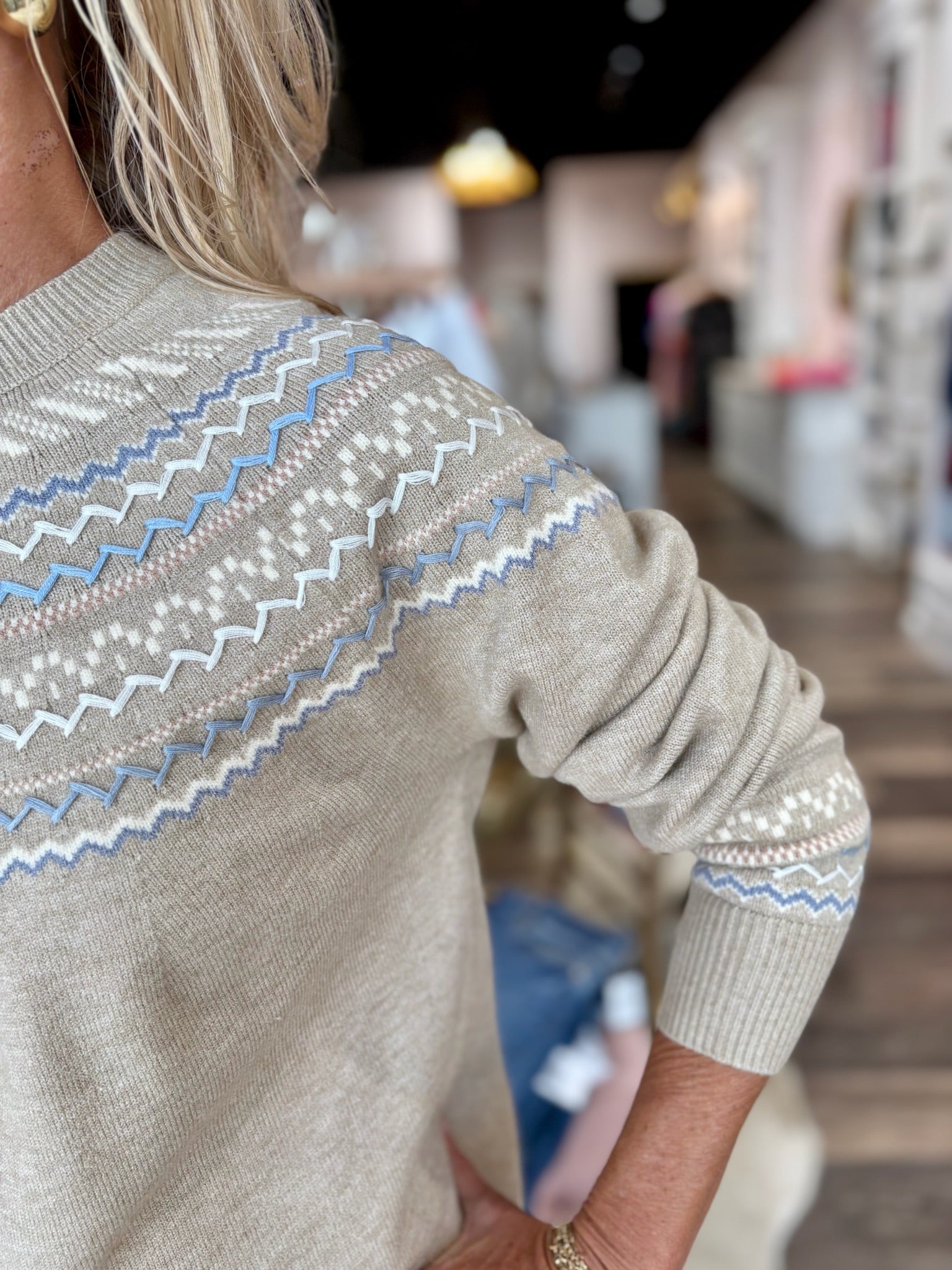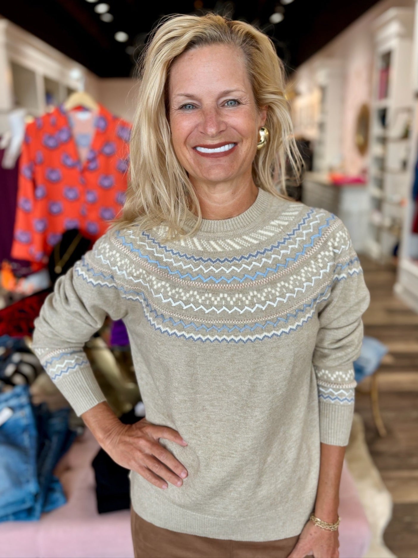 A cozy-chic essential with a touch of texture. This jacquard knit sweater features classic raglan sleeves for a relaxed fit and easy movement, while the intricate woven design adds visual depth and style. Soft, warm, and versatile, it’s the perfect layering piece for cool-weather days—equally at home with denim, trousers, or a skirt.
