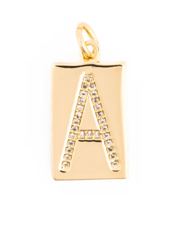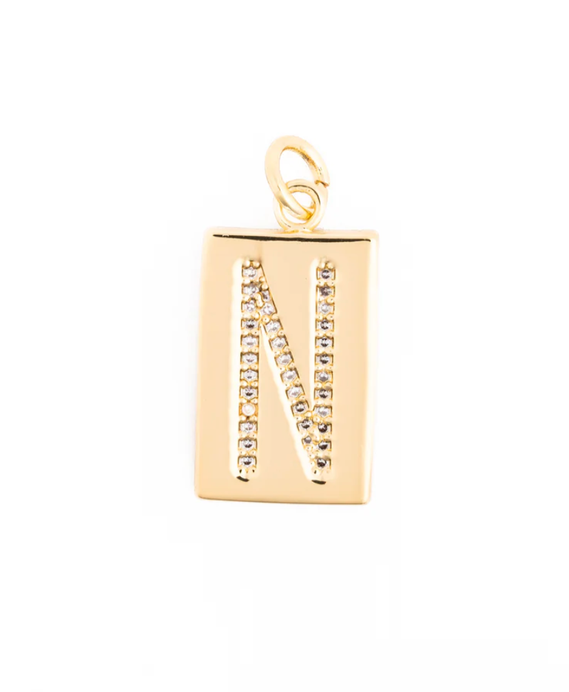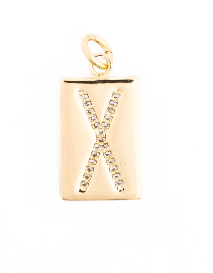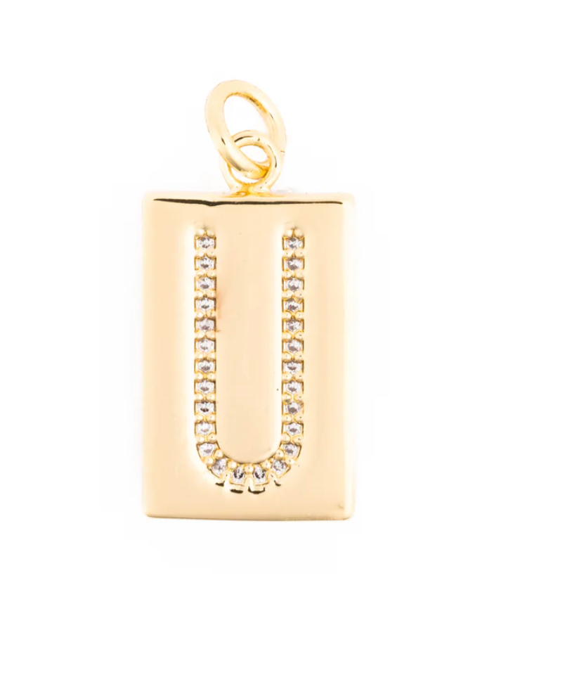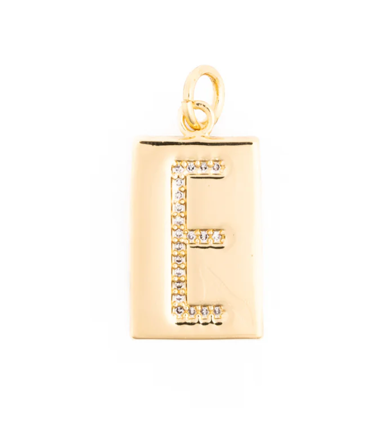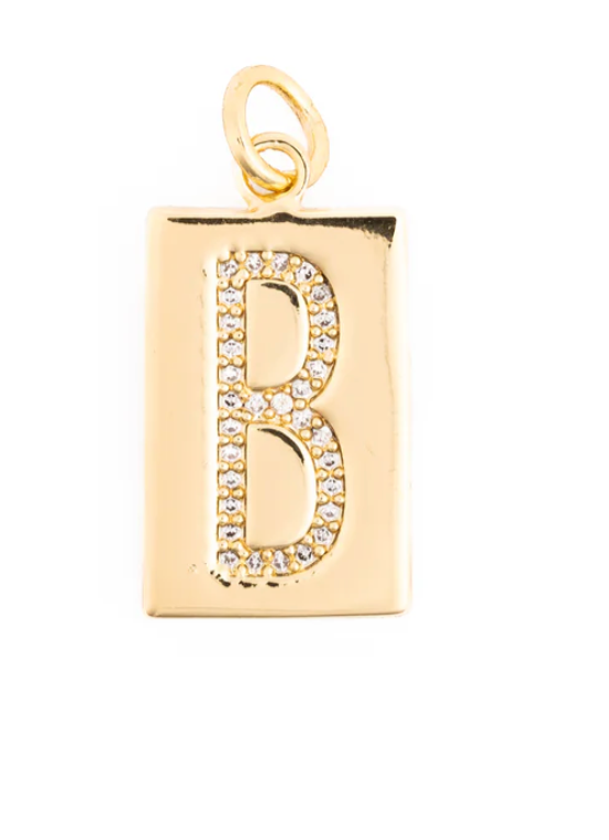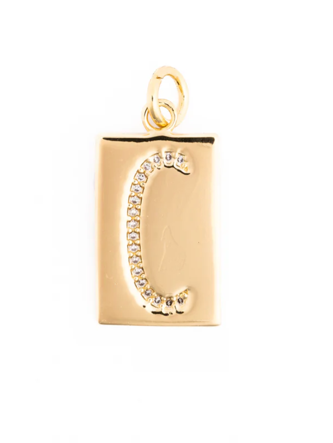 The Christine Charm features a sleek rectangular design adorned with rhinestone initials, offering a touch of sparkle and sophistication. Perfectly compatible with our Thea Charm Necklace or Bracelet, it can be worn alone for a refined look or stacked with other charms for a personalized, elevated style. A timeless piece that adds both meaning and elegance to your jewelry collection.