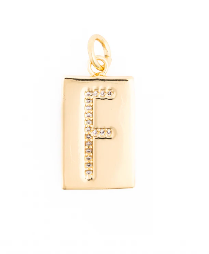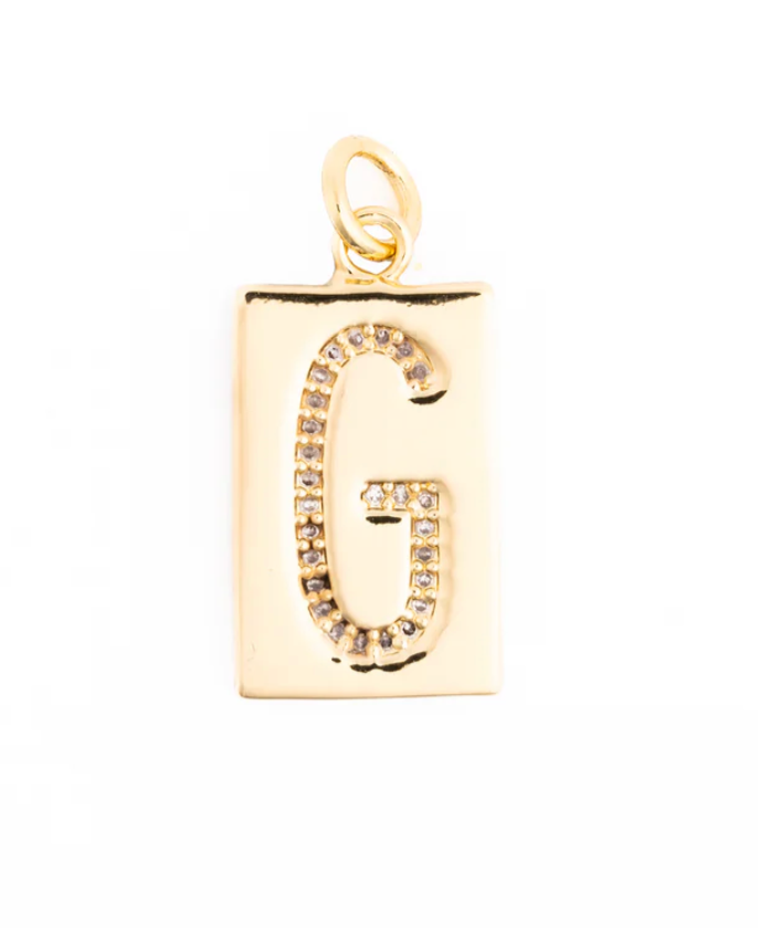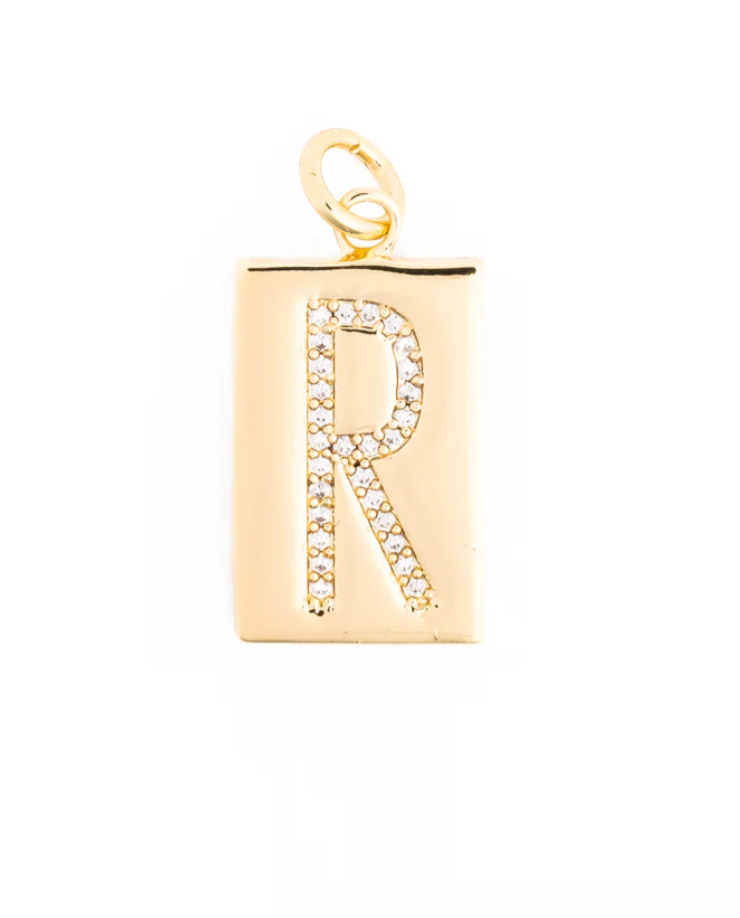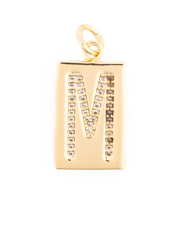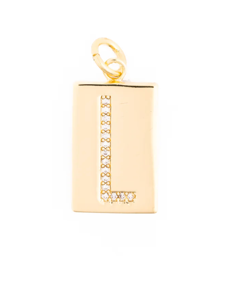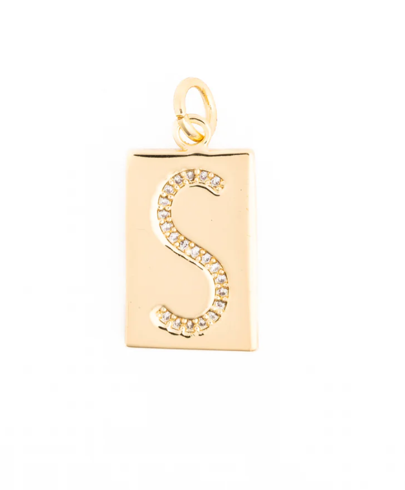 The Christine Charm features a sleek rectangular design adorned with rhinestone initials, offering a touch of sparkle and sophistication. Perfectly compatible with our Thea Charm Necklace or Bracelet, it can be worn alone for a refined look or stacked with other charms for a personalized, elevated style. A timeless piece that adds both meaning and elegance to your jewelry collection.
