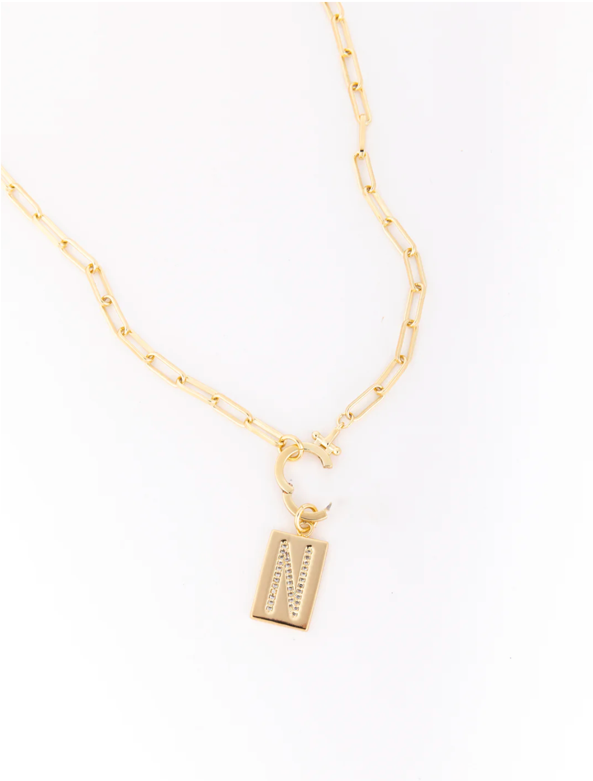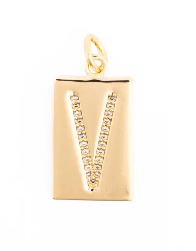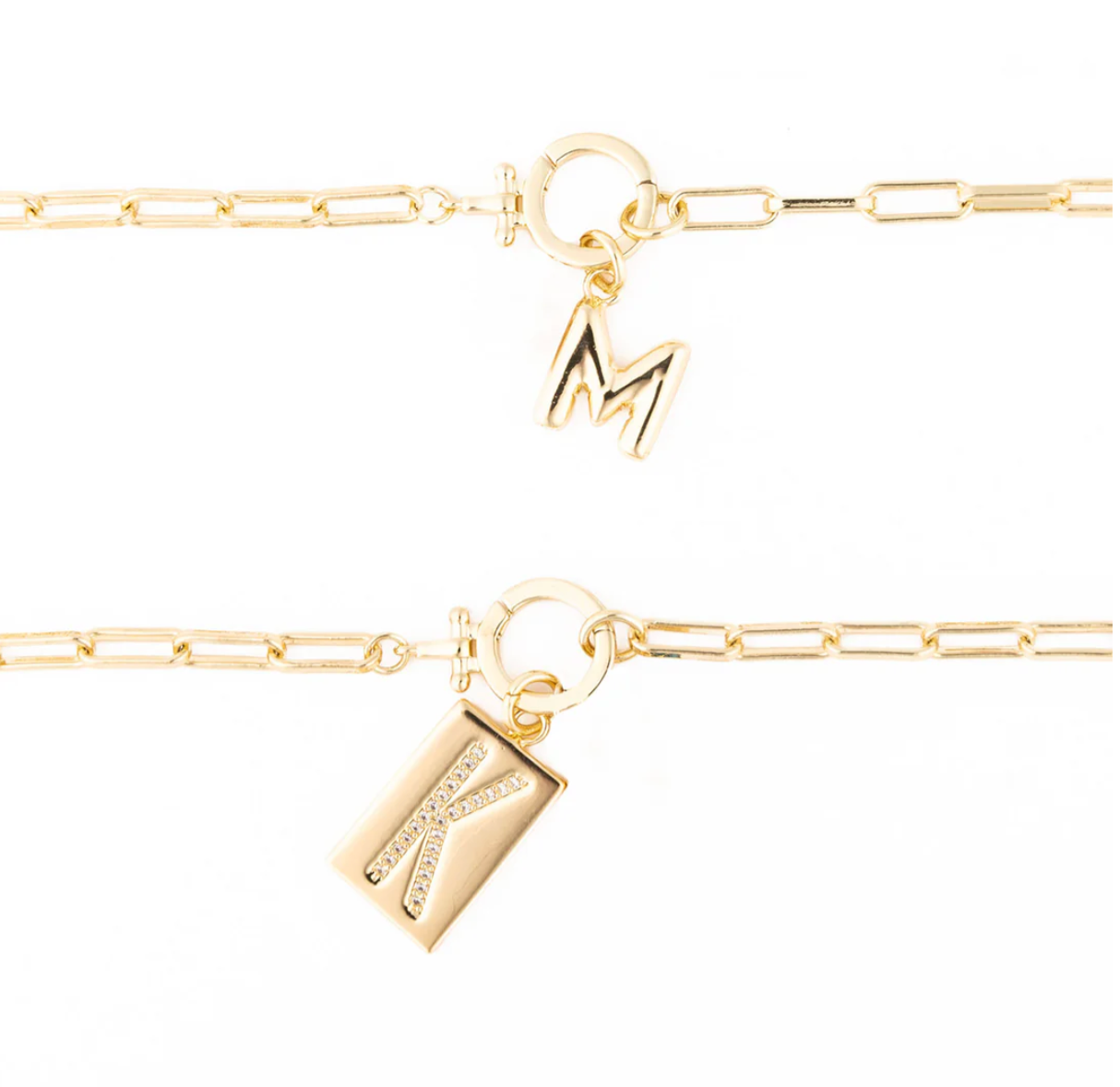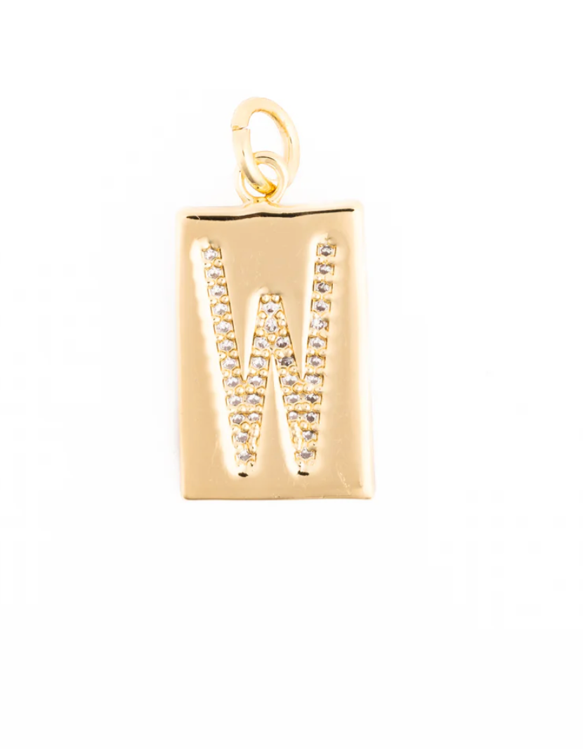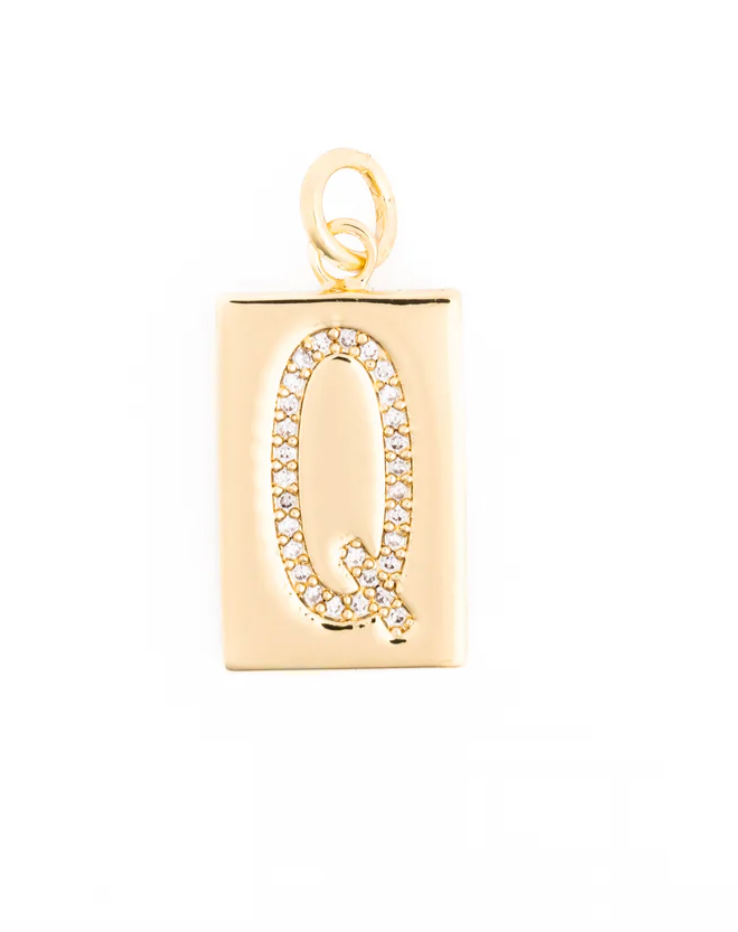 The Christine Charm features a sleek rectangular design adorned with rhinestone initials, offering a touch of sparkle and sophistication. Perfectly compatible with our Thea Charm Necklace or Bracelet, it can be worn alone for a refined look or stacked with other charms for a personalized, elevated style. A timeless piece that adds both meaning and elegance to your jewelry collection.
