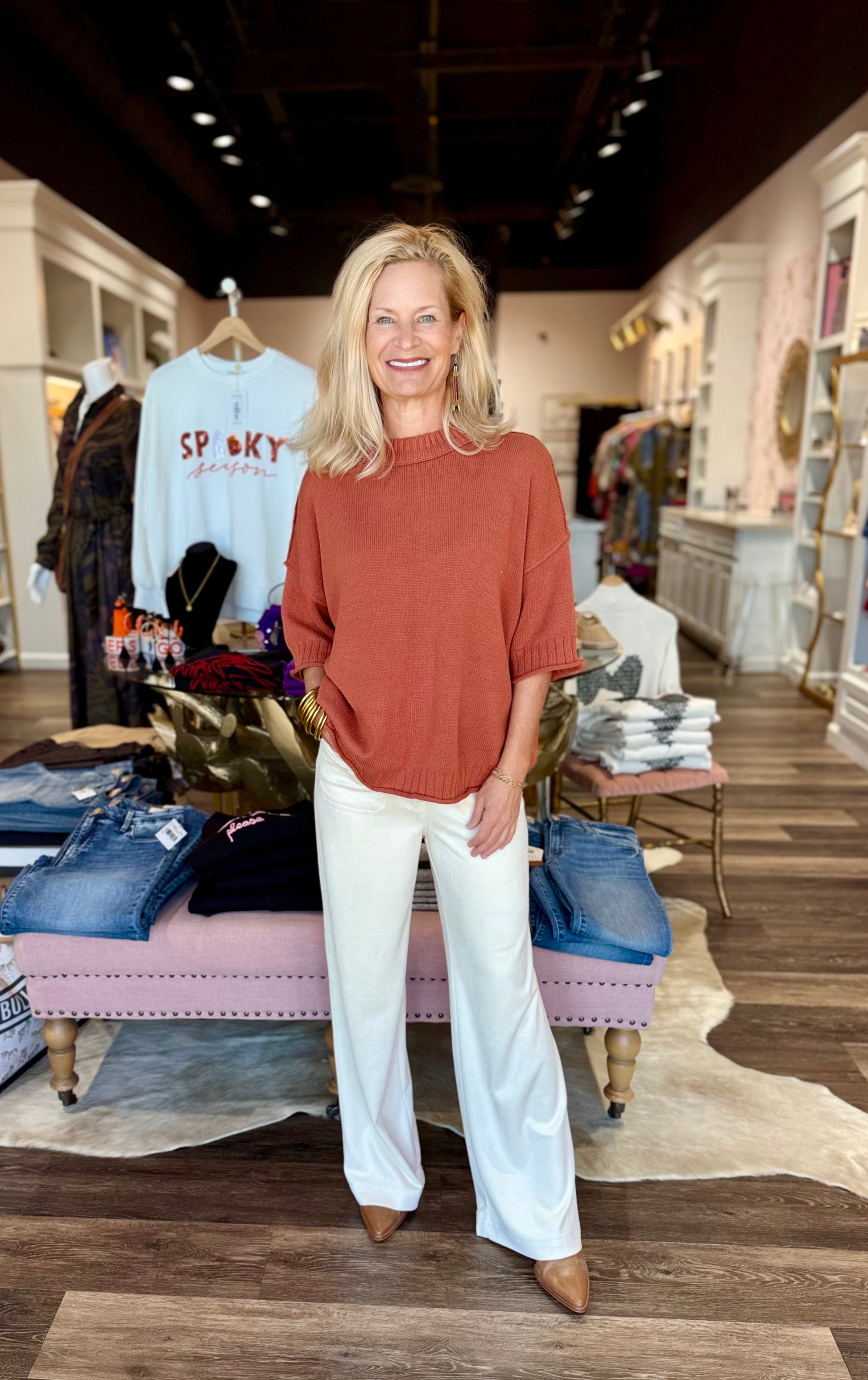 Crew Neck Casual Drop Shoulder Knitted Sweater Rust