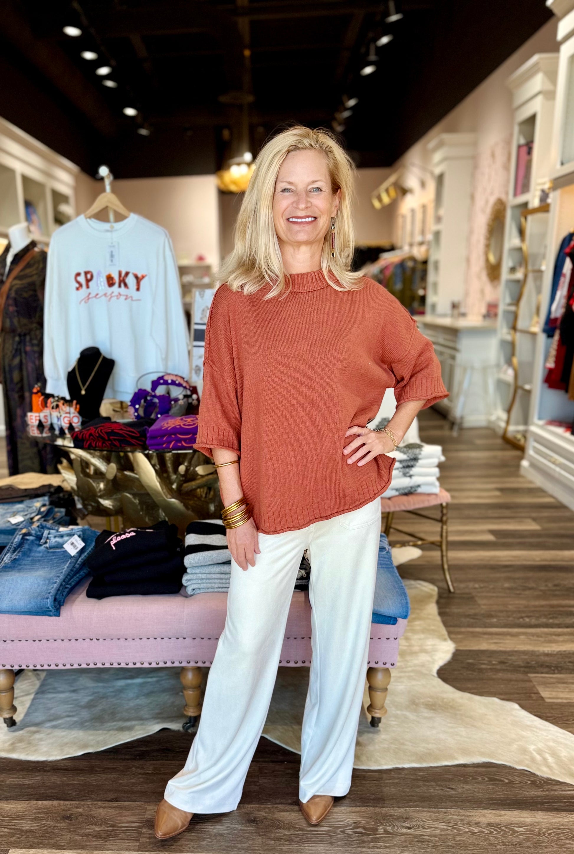 A cozy yet versatile style featuring a ribbed crew neckline, short sleeves, and relaxed drop shoulders. Finished with a ribbed hem for a clean look, this lightweight knit is perfect for effortless layering or everyday wear.