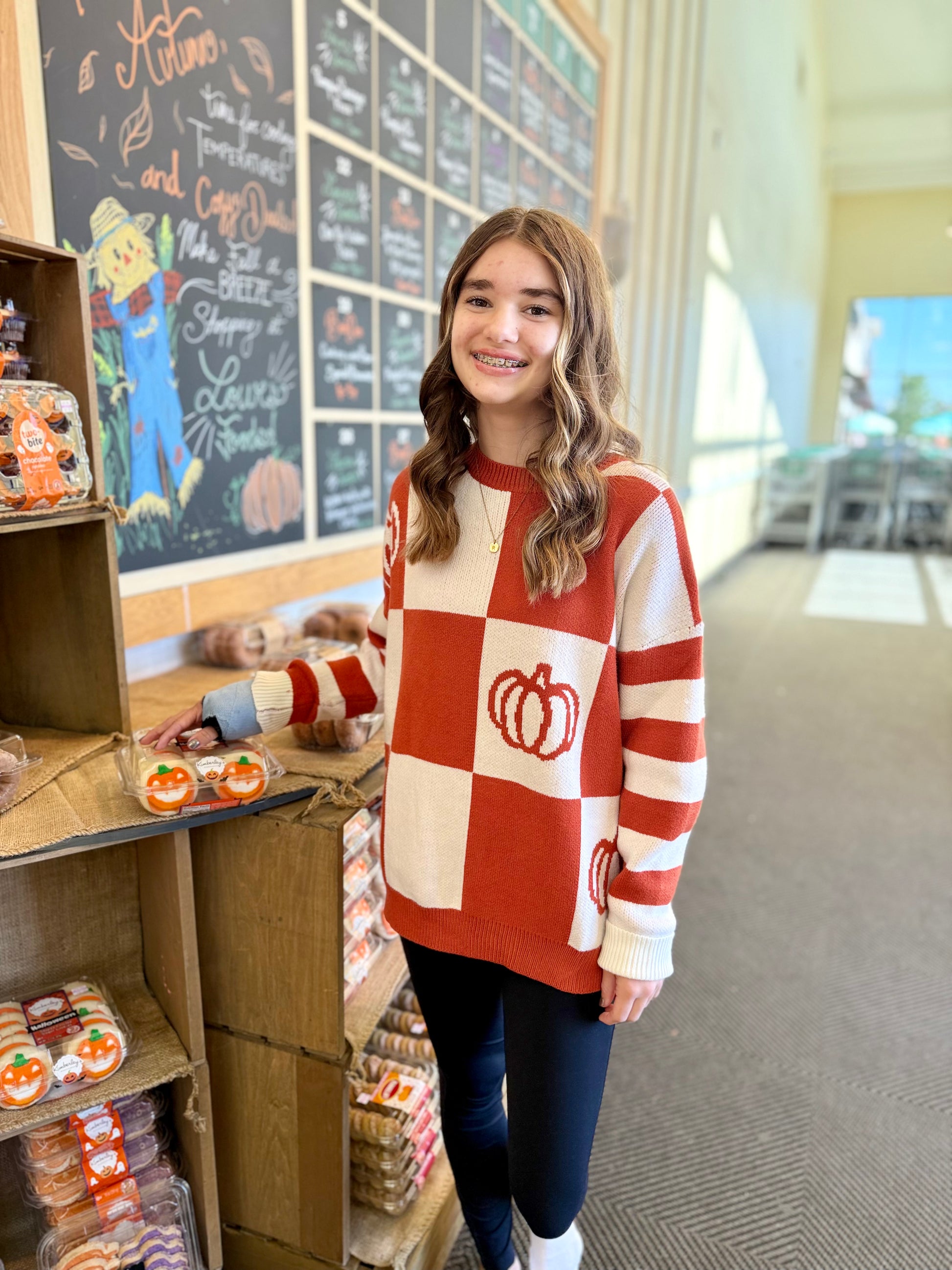 Ribbed Crew Neck Checkerboard/Stripe Sweater
