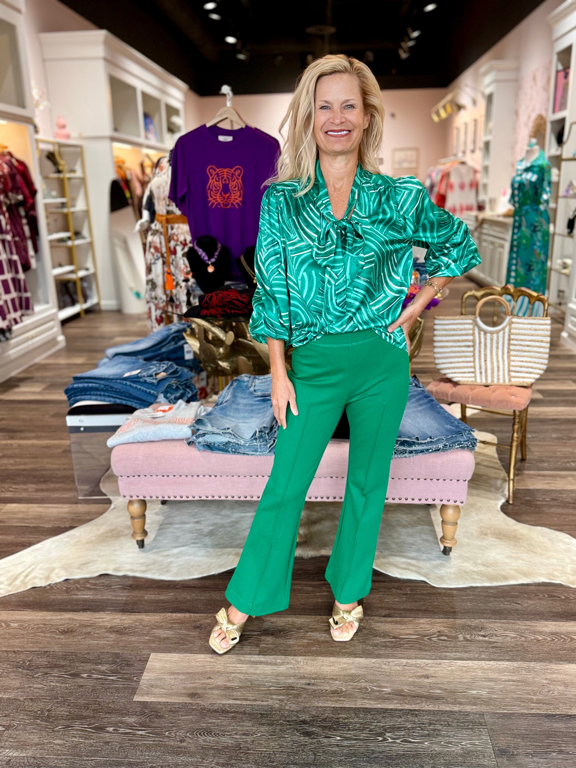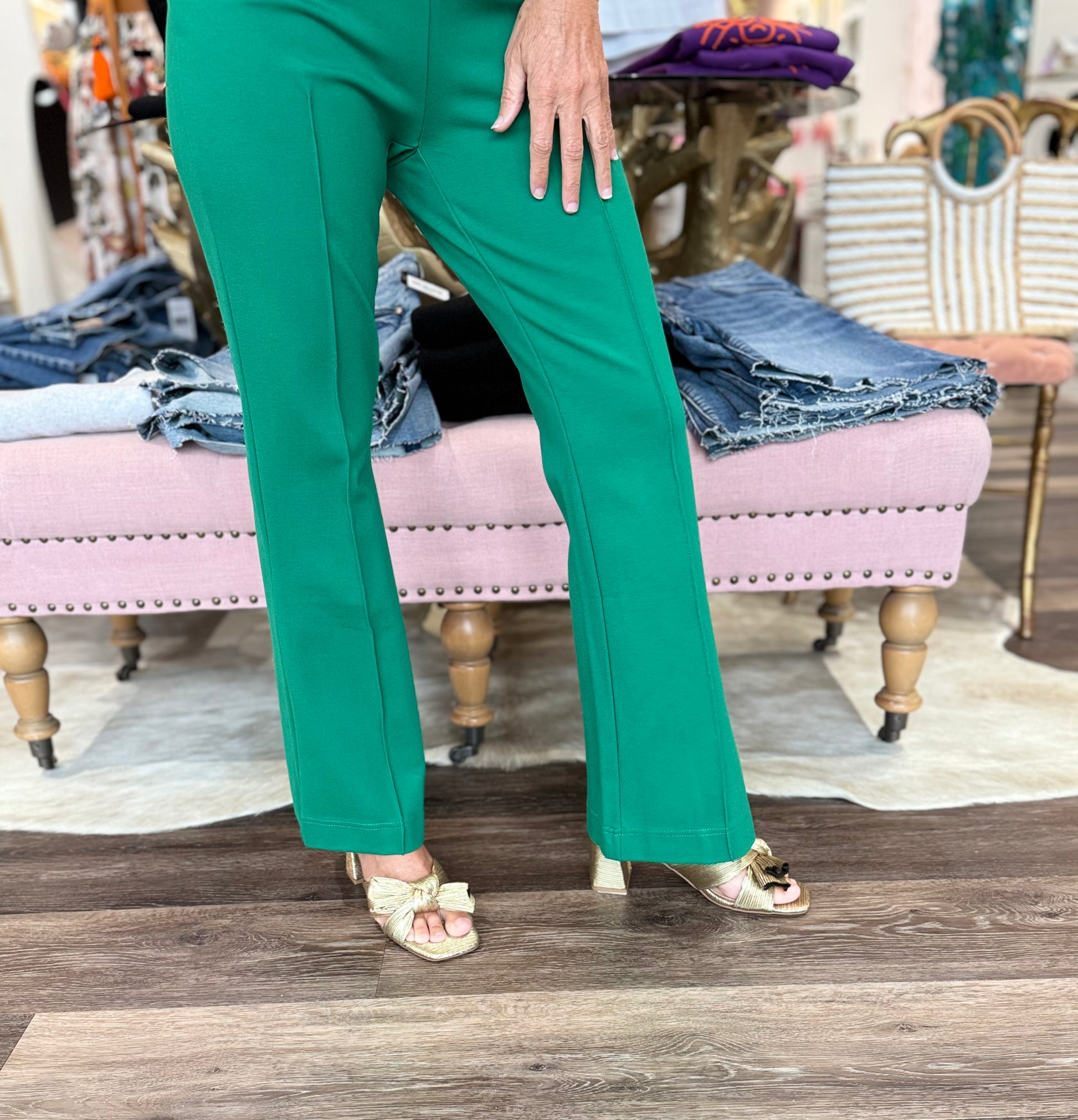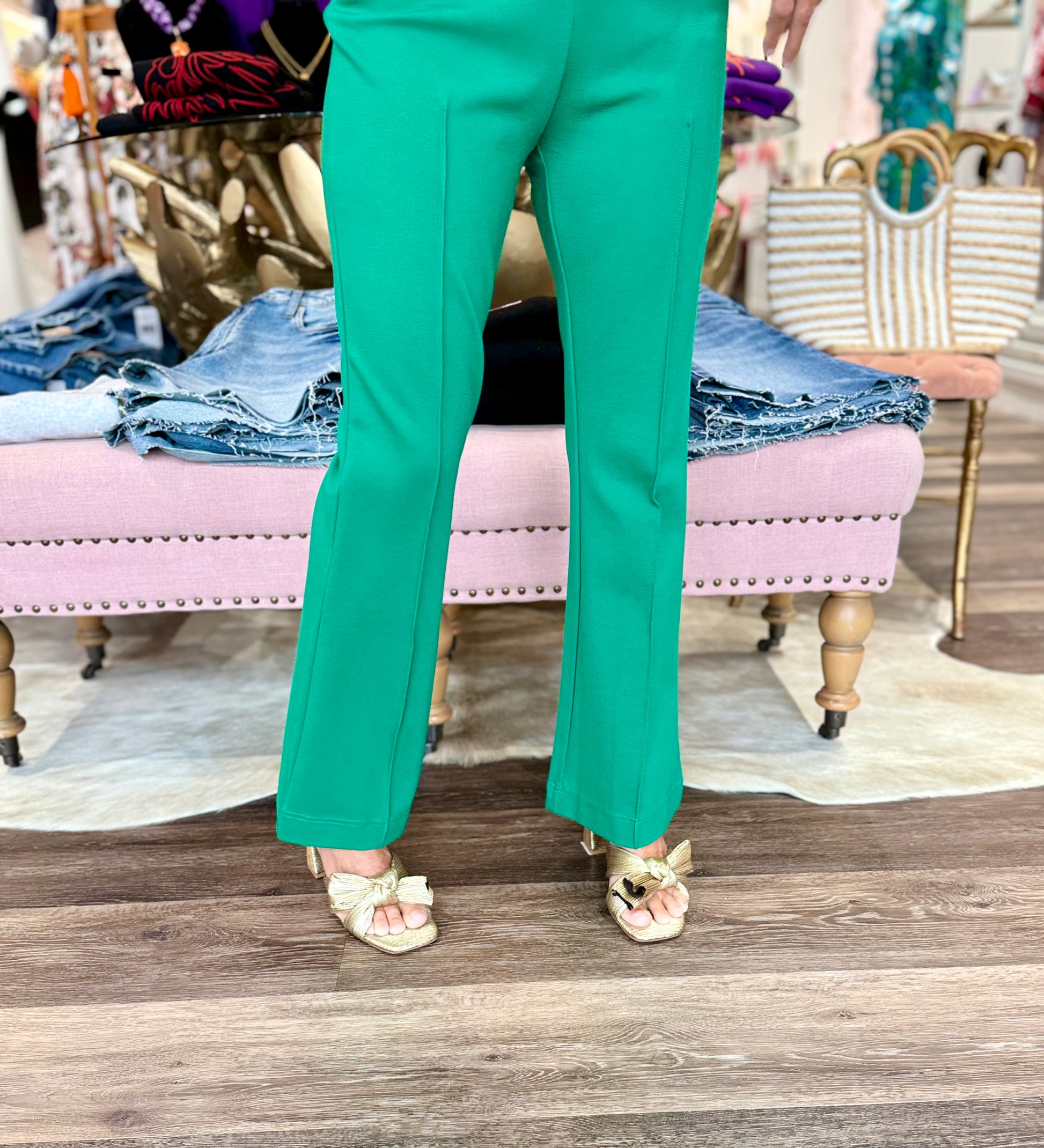 Jade Front Seaming Ponte Bell Ankle Pant Green