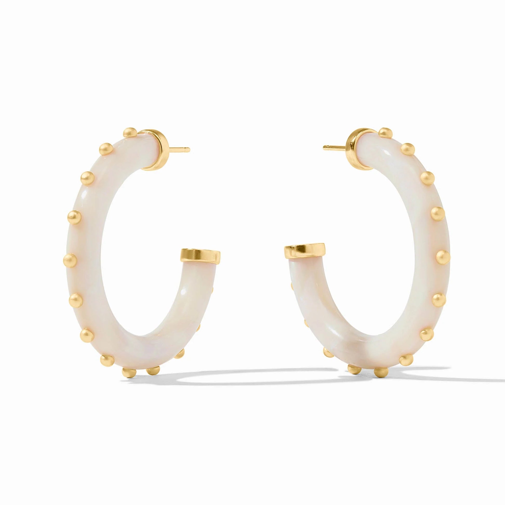 Timeless with a modern twist, the Colette Hoop Earrings from Julie Vos are the perfect everyday statement. Crafted with luxurious 24K gold plating, these elegant hoops feature refined Colette-inspired detailing that adds subtle texture and shine. Their classic silhouette makes them easy to style with both casual and dressy looks, while the polished finish brings a sophisticated touch. Lightweight yet eye-catching, they’re the kind of hoops you’ll reach for again and again.