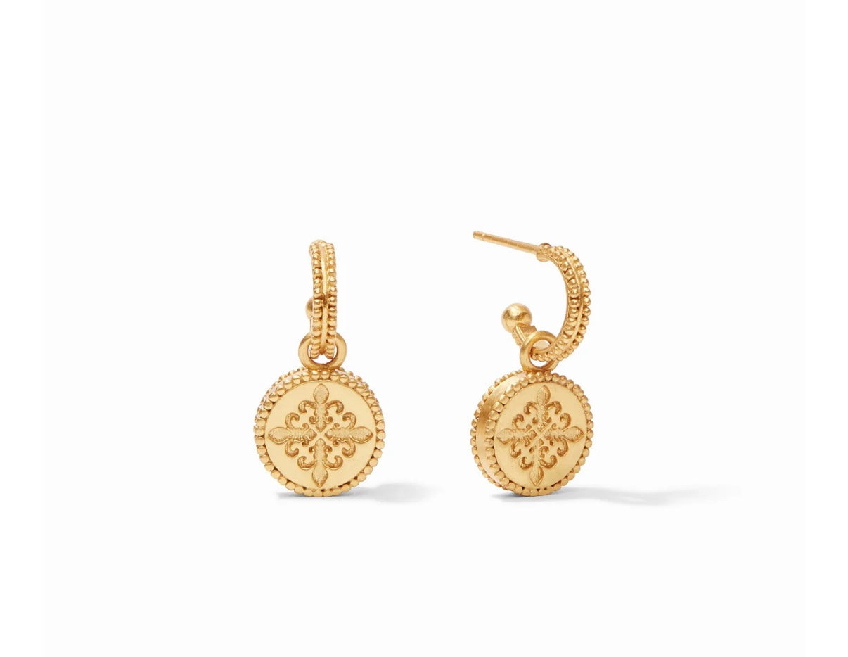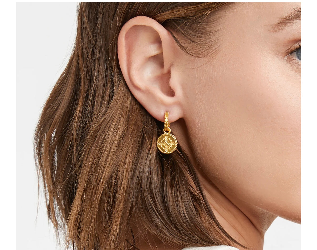 Julie Vos Fleur-de-Lis Hoop & Charm Earring Obsidian Black