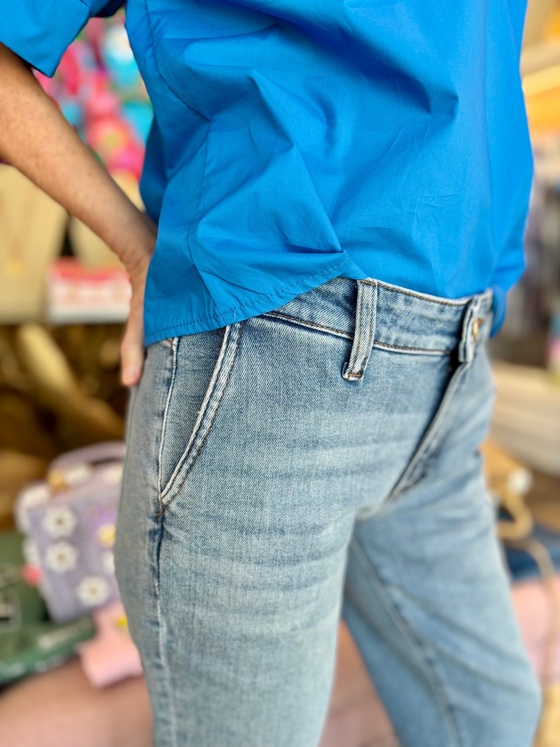Kut Kelsey Mid Rise Ankle Flare Raw Hem With Slash Pocket