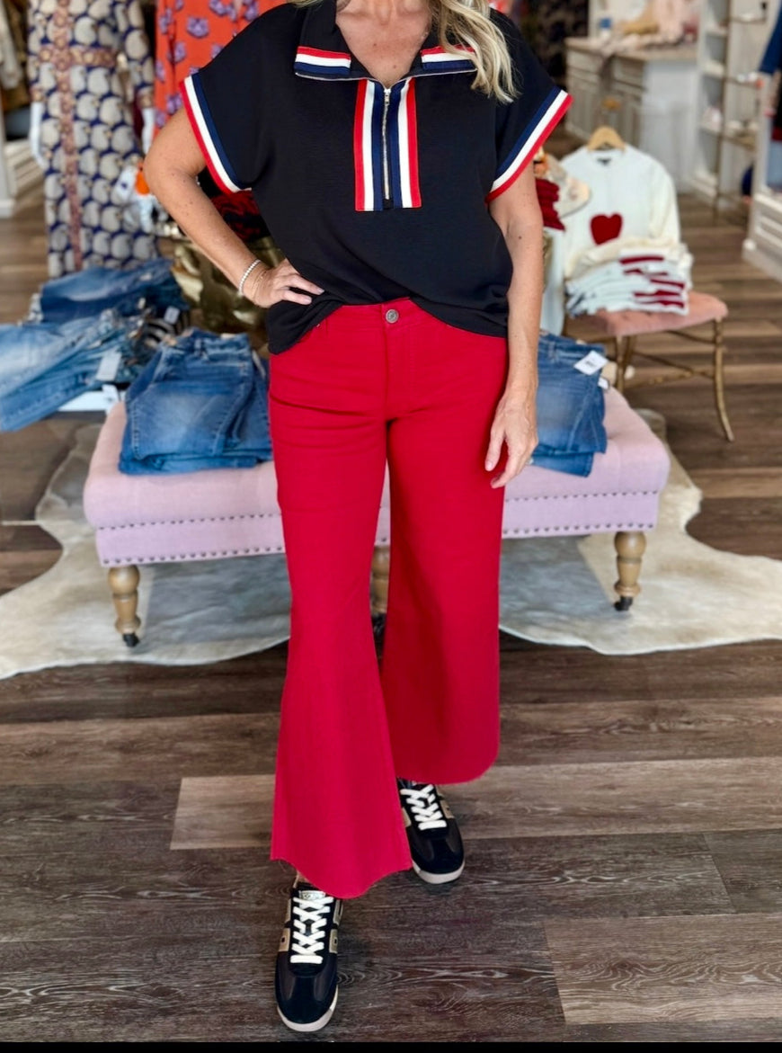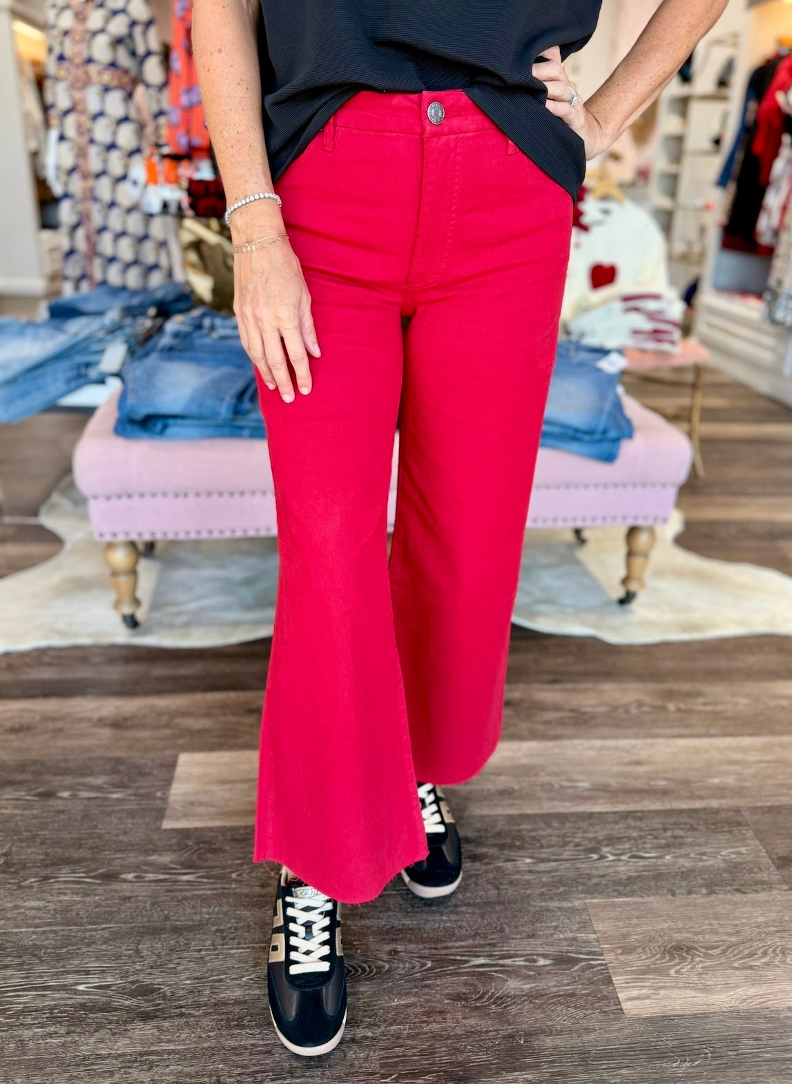 Kut Meg High Rise Wide Leg Fab Ruby Red