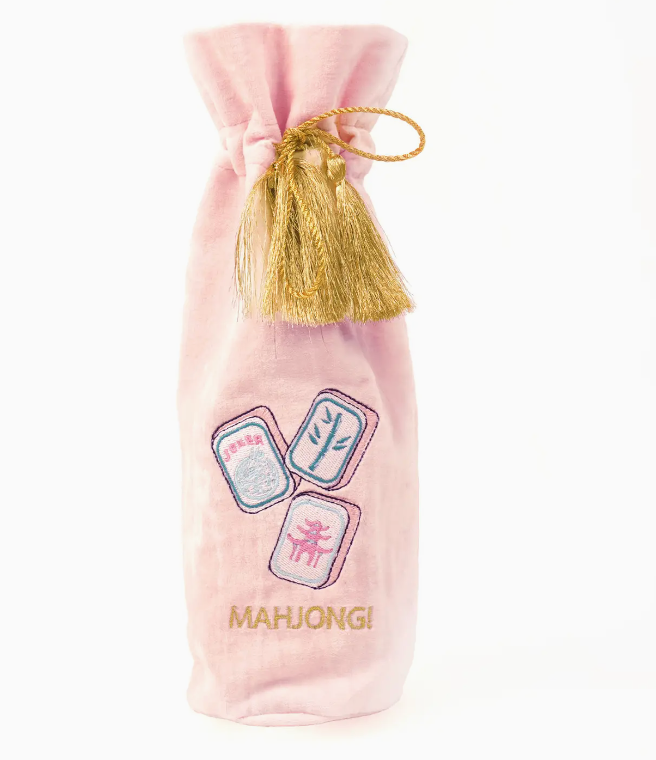 Gift in sporty style with our Mahjong Embroidered Wine Bag. With its velvet embroidery and tassel tie drawstring, your gift will be sure to have a touch of elegance that’ll get all your guests ready to dance! Fit up to a 750ml bottle of champagne, vodka - or whatever your heart desires! Make your celebration extra special with our other mahjong-themed items; together they make the perfect gift package ready! The Mahjong Embroidered Wine Bag is a glitzy way to enjoy those special occasions. Amazing gifts for birthdays, graduation, housewarming, Christmas, Mother's Day, Valentine's Day, & many more special occasions!