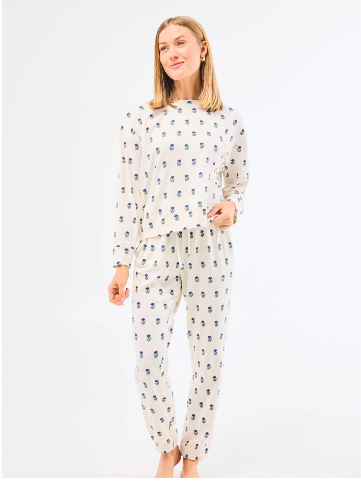 Mary Square Women's Jogger Pajama Set Floral Foulard Navy