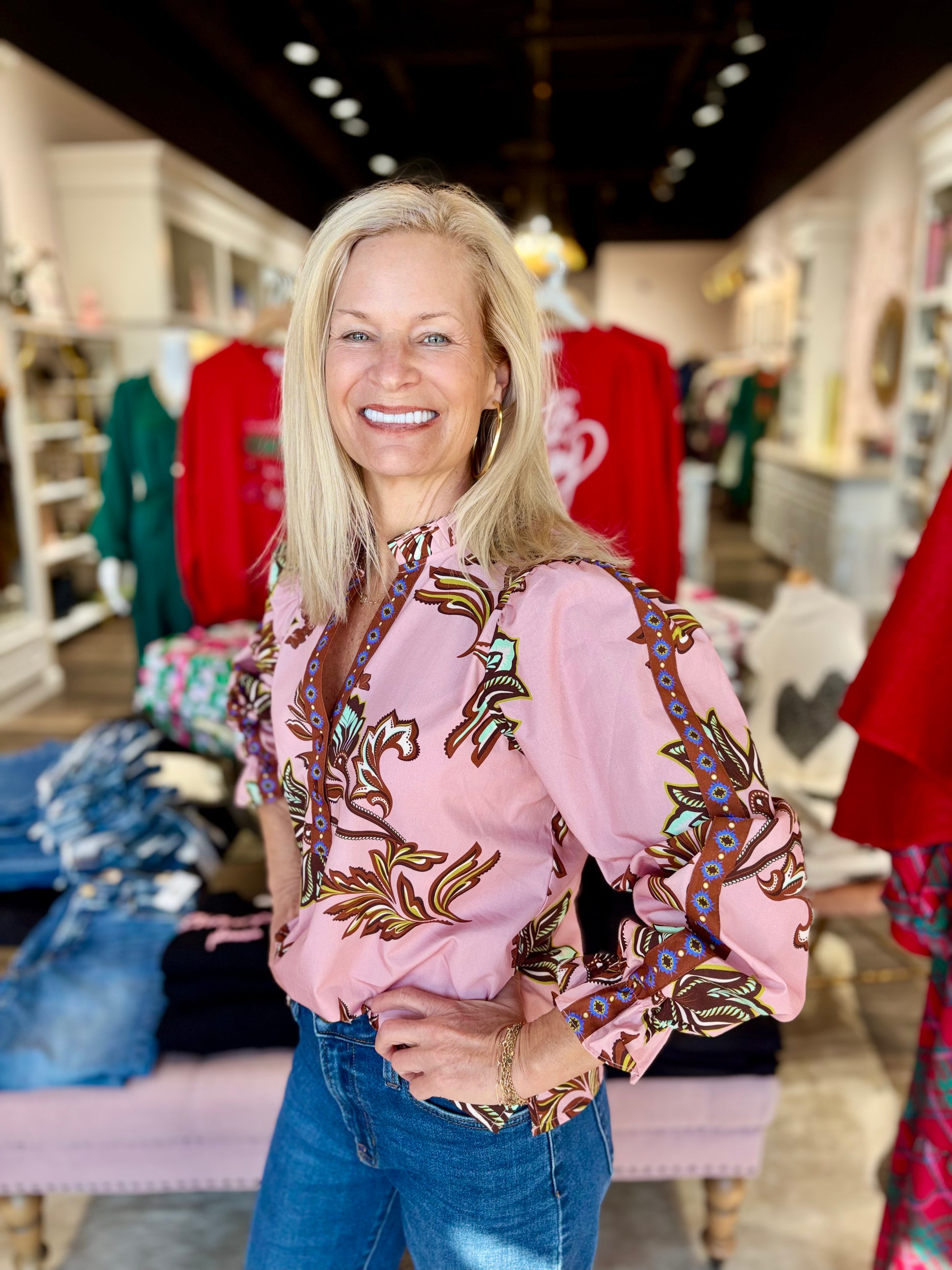 Add a pop of playful charm to your wardrobe with the Maude Vivante Ashley Top. Featuring Floral Motifs print. Perfect for turning heads while keeping things casual and fun.