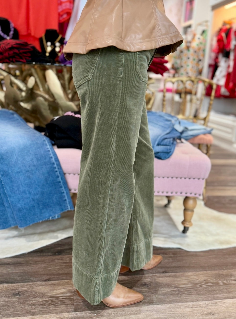 Moss High Rise Crop Wide Pocket Corduroy Pants