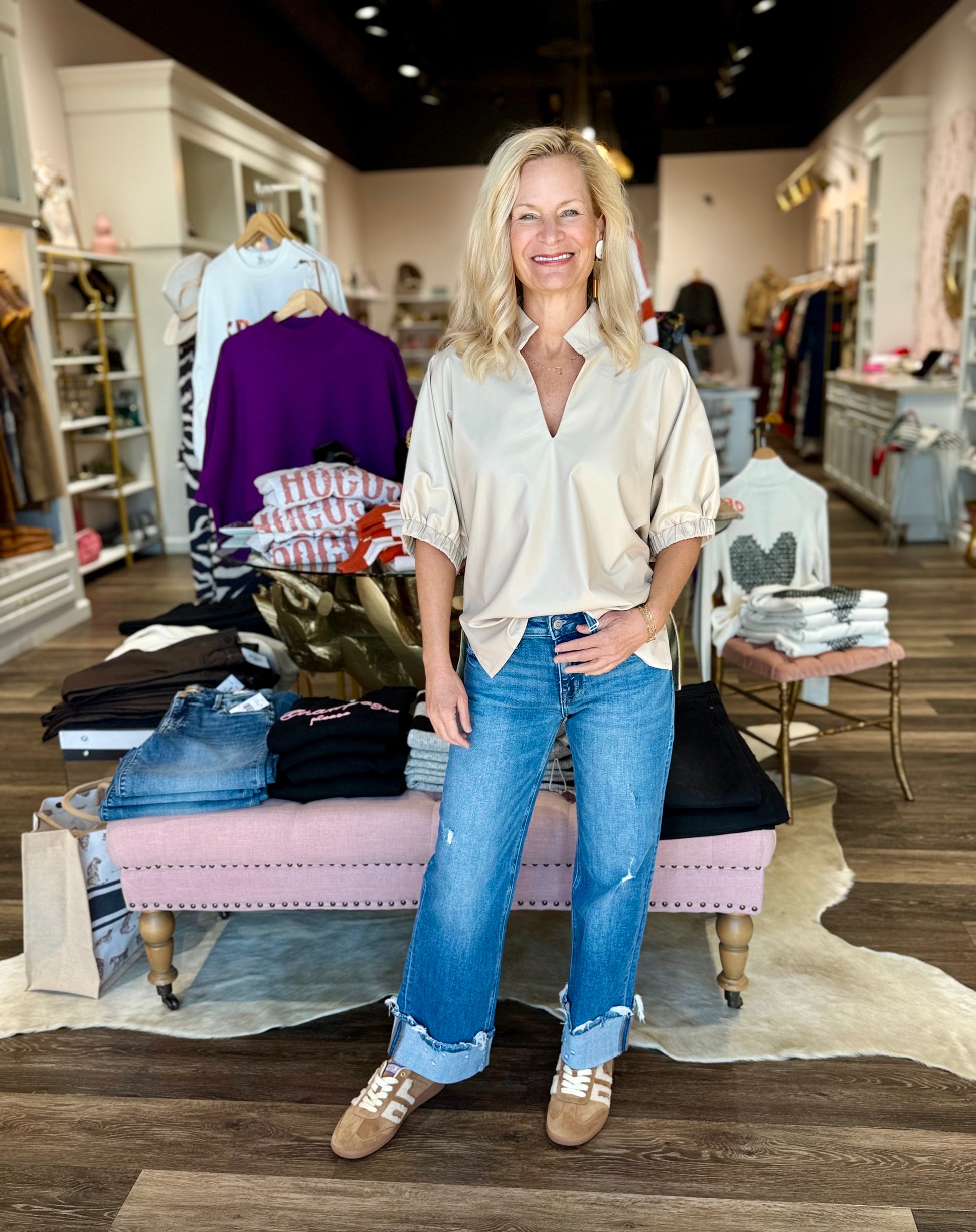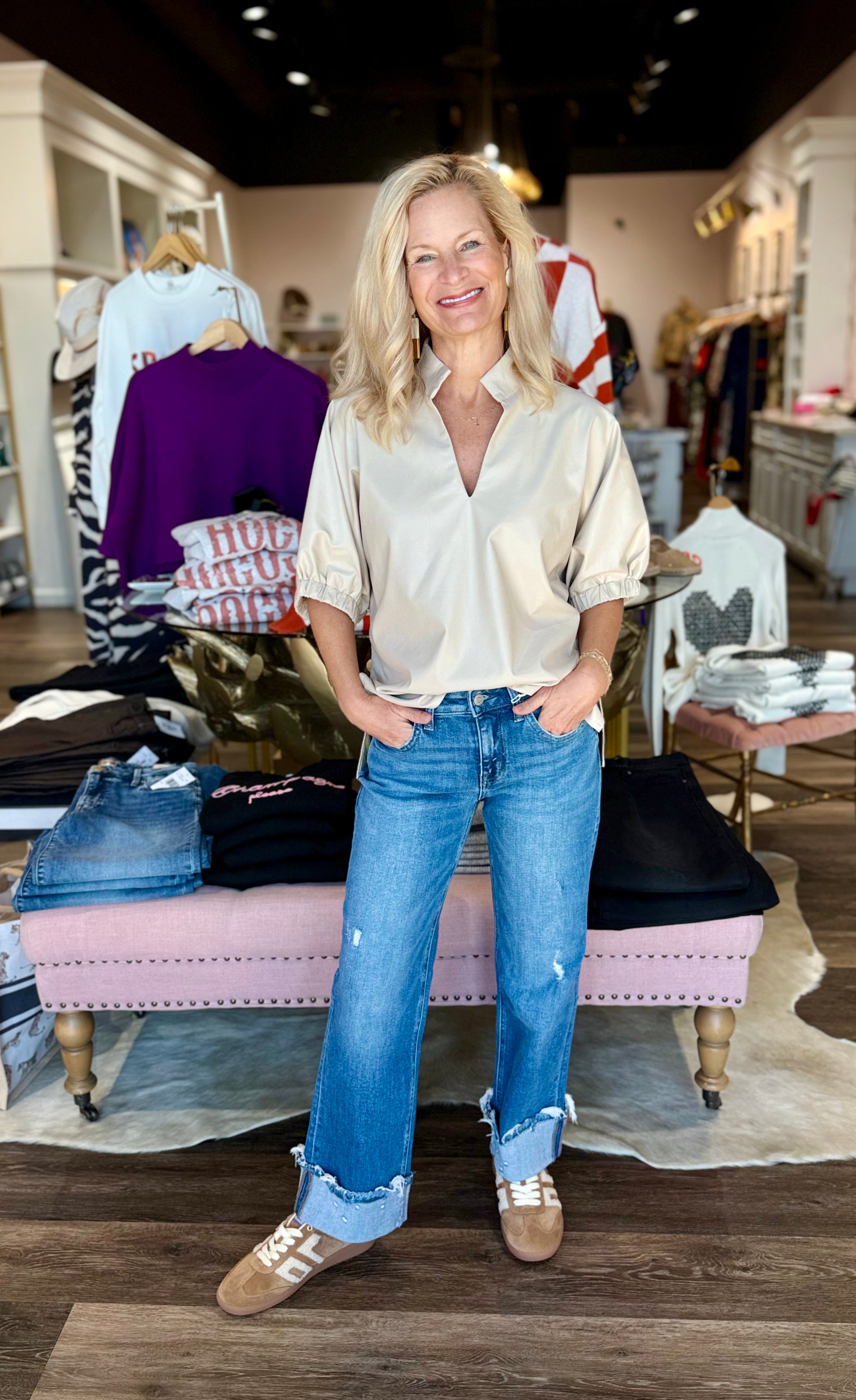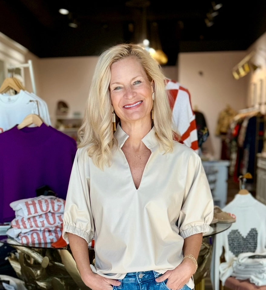 Puff Sleeve Faux Leather Top Ecru
