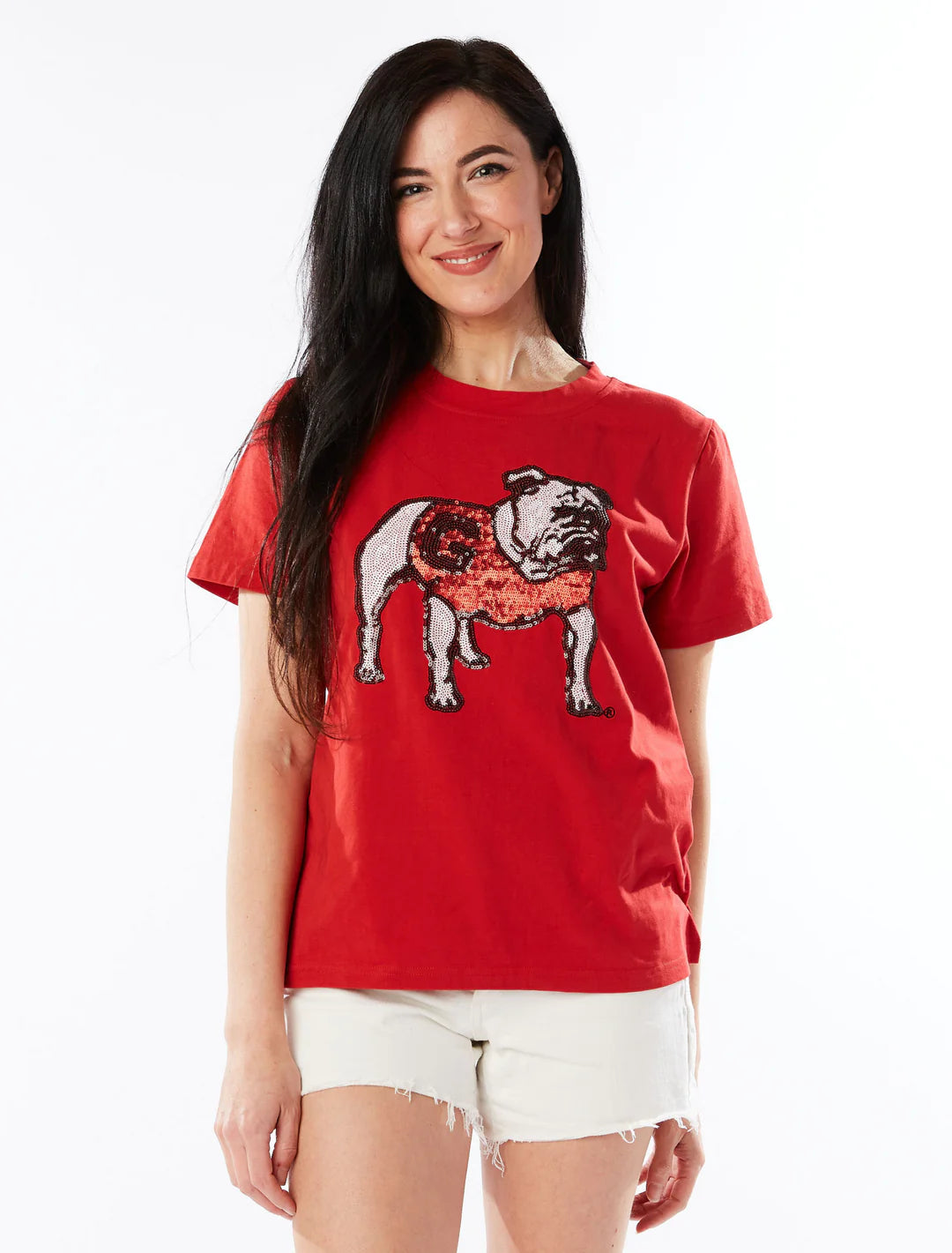 There's no better way to show your team pride than in our sequin shirts. A Stewart Simmons favorite, this sparkly tee is made of comfortable pima cotton. Added stretch gives it the perfect fit. With machine washable sequins, you can wear this top time and time again. Trust us, you'll want to.