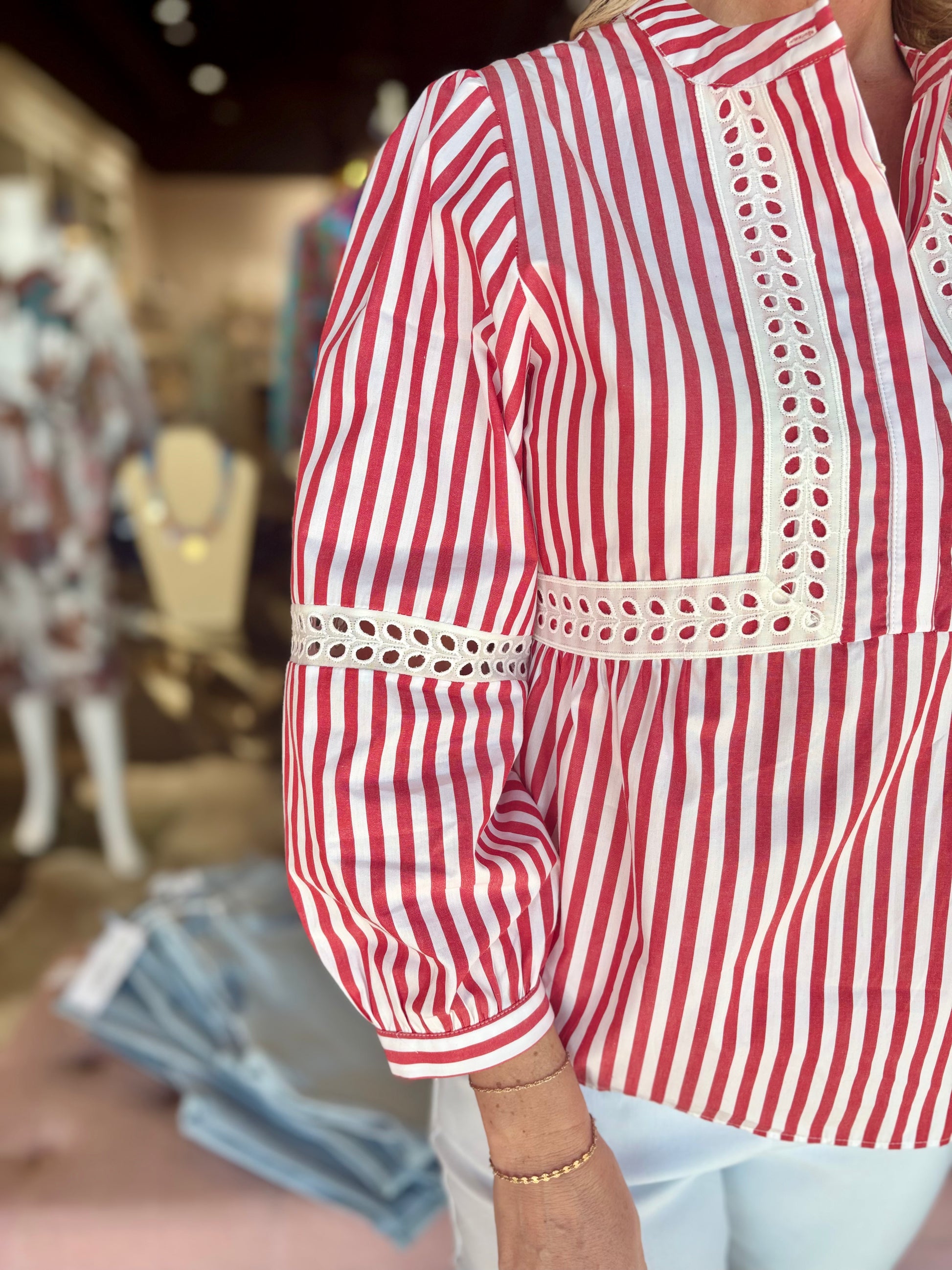 Romantic style white shirt with star shaped embroidery. Puff sleeves. Exclusive Vilagallo fabric made in Spain.