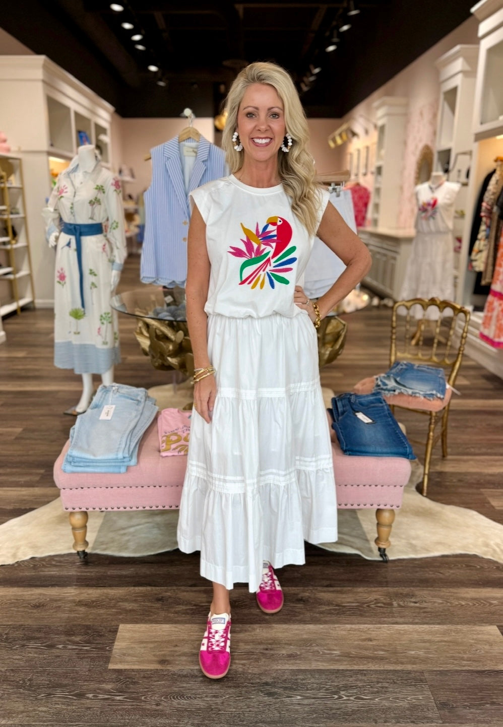 White Tiered Midi Skirt