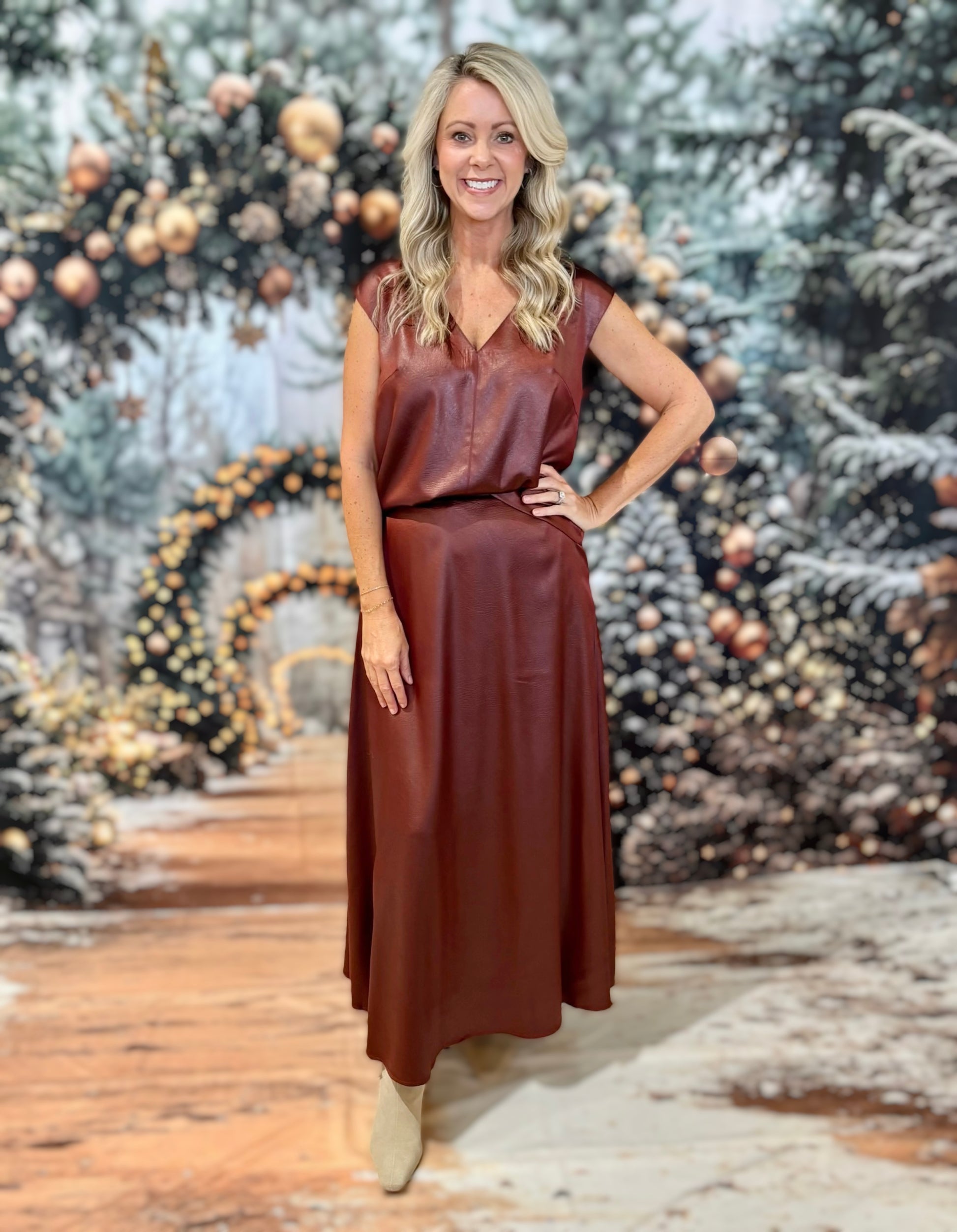 The Depth Top in rich burgundy pairs effortless style with modern detailing. Designed with a flattering fit and subtle layered textures, it complements everything from tailored trousers to skirts for versatile day-to-night wear.